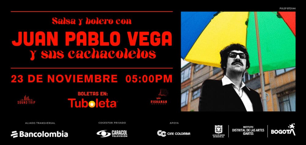 El Teatro Mayor Julio Mario Santo Domingo será testigo de un show inolvidable de salsa y bolero con Juan Pablo Vega y sus Cachacoletos. La cita con el músico y productor colombiano será el domingo 23 de noviembre a las 5:00 pm.